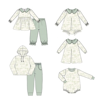 Design personalizado férias crianças boutique outfit 100% algodão impressão crianças roupas inverno bebê menina roupas com gola recalloped